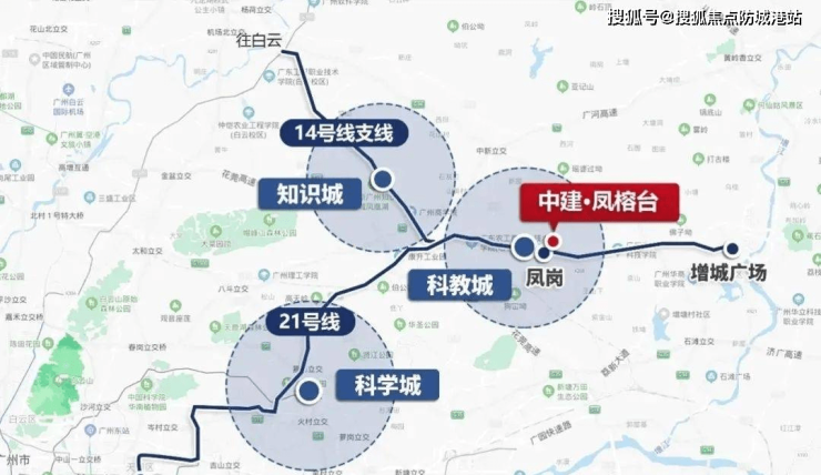 具体来看,中建凤榕台位于增城广汕公路旁,距离21号线凤岗站约600米,可乘坐快车线直达科学城、珠江新城等核心区,交通比较友好。