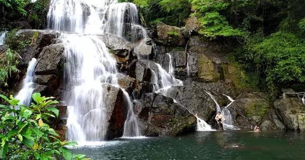 十万大山较高海拔1462米,大山内分布着原始的亚热带雨林,有着珍贵稀动植物资源,不仅山清水秀石美,而且空气清新有“中国氧都”之美誉,国家森林公园内的“天女浴池”,像一面椭圆形的镜子,池水呈暗红色略带点黄,浑然天成。