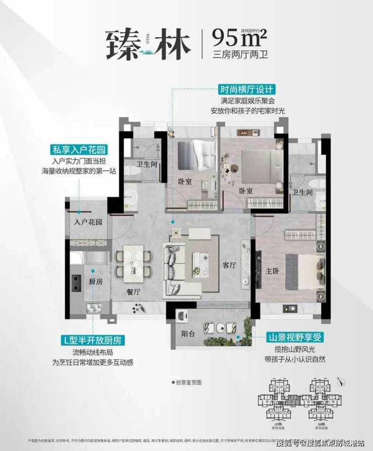 建面约80方三房一卫科城甄稀户型、约90方三房两卫三开间朝南阳光户型、约95方三房两卫横厅精致户型,约110方四房两卫人气尊享户型。