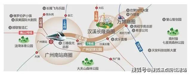 位于番禺区两大国际商圈之一——长隆-万博商圈附近,紧邻广州南站,交通便利;汉溪大道在建中,未来将串联起多个核心板块,形成万亿级产业集群。