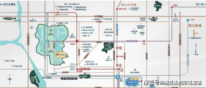 交通便捷,四横四纵的道路网络,加上地铁 3 号线(在建中)、4 号线(在建中)、8 号线(规划中),以及佛山西站和广佛肇城际轻轨,构建起湾区一小时生活圈。