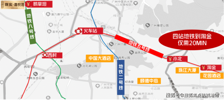 交通方面 ,地铁8号线同德站/鹅掌坦站距项目仅约 600米(直线距离) ,一站荔湾,两站越秀,三站陈家祠,四站淘金。通过鹅掌坦站可一站换乘5号线 西村站,八站到珠江新城,满城繁华随时开启。