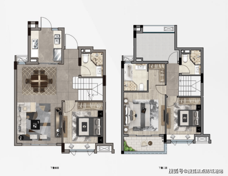 其中建面约139平下叠,南向开间约3.8米,有宽敞空间供家庭娱乐欢聚。二层的主卧连通露台,主人可随时与阳光清风密语。