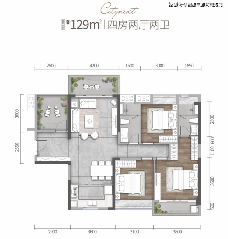 自带1个商场:商场规划有2.6万㎡,商场体量不算大,不过应该可以满足社区内的基本消费需求。