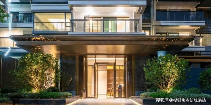 东侧大堂门头,金属与温姆德灰高墙搭配,铺开宽约50米的奢雅府门,极富格调美。