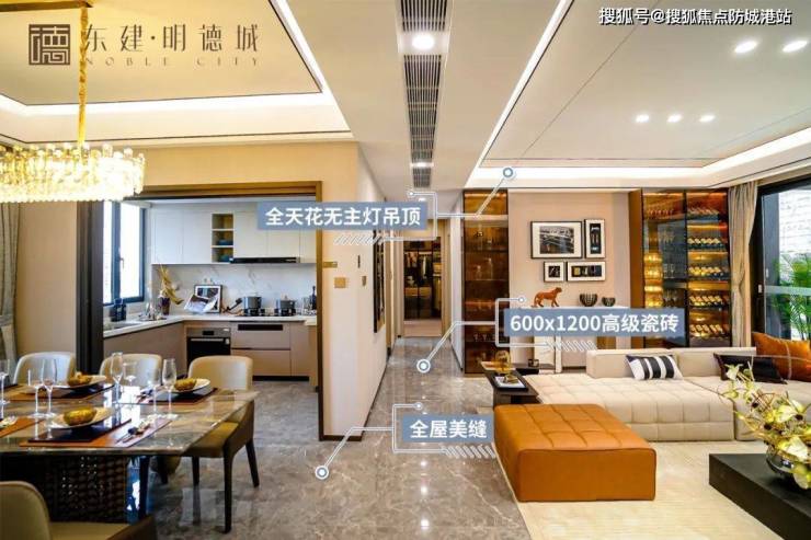客餐厅公共采用600x1200大面积高级瓷砖,配置全屋美缝,每一寸细节,都展示出对极致美的洞察。