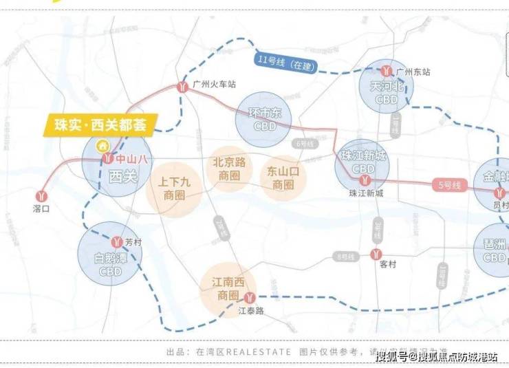 11号线(在建,预计2024年通车),广州首条环线,串联起白鹅潭、琶洲、天河北等CBD,周边遍布北京路、江南西、广州塔等高端商业区。