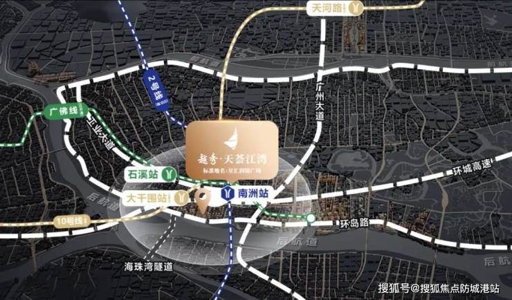 越秀·天荟江湾位于海珠区西南部,一线临珠江后航道,滨水而建,商业建筑面积约55万㎡,集景观公寓、街区商铺、大型商业综合体于一体的滨江综合体,将打造成为海珠南部的商业商务核心。