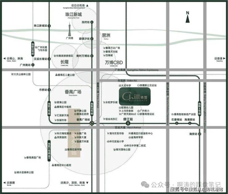 保利琅誉,位于“番禺广场+番禺客运站”双TOD上,与3号线东延段傍江站(在建中)直线距离约590米,一站即达番禺广场站:地铁3号线、18号线、22号线、3号线东延段(在建中) 、17号线(规划中),五轨交汇,一站畅行琶洲,两站通勤珠江新城。