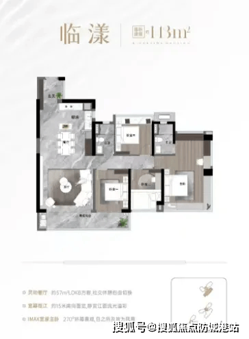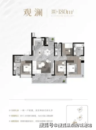 3. 180㎡四房两厅三卫:一线江景大平层,双主套适配三代同堂