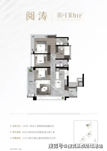1. 130㎡四房两厅两卫:入门改善优选,全南采光+江景视野