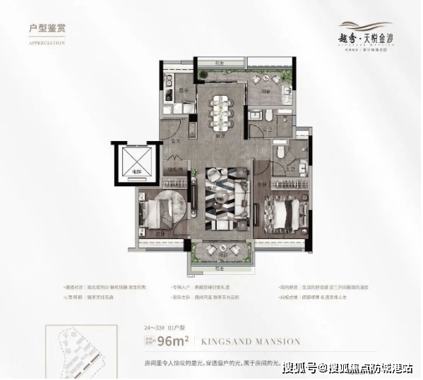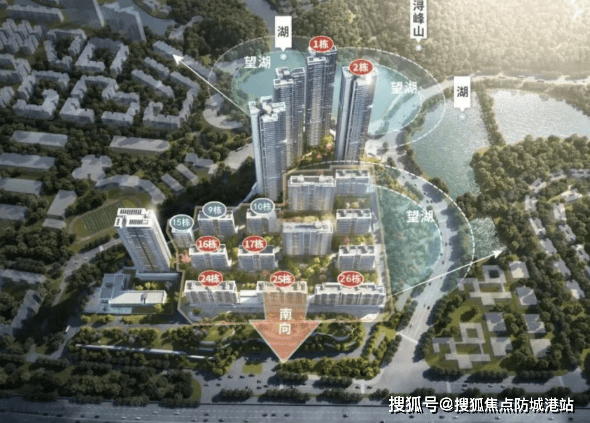 建面约96㎡超高层三房:总价270万起,3梯6户,33层以上部分单位可远眺湖山景观,性价比突出。