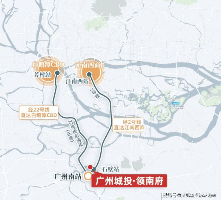 岭南府所在的广州南站区域虽不能简单定义为区府核心但却是番禺区重点发展的核心商务区之一且具有TOD模式的典型特征。广州南站作为超大型交通枢纽是多种交通方式汇聚的TOD核心区域岭南府距离石壁站仅约300米享受着TOD带来的便捷交通和人流集聚效应。