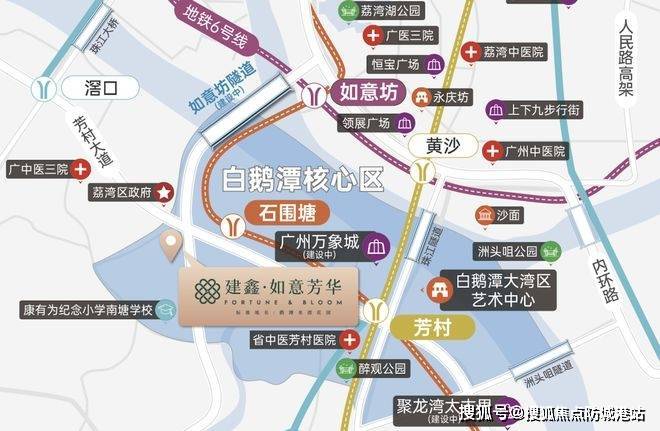 在广州西翼城市发展版图上,建鑫·如意芳华占据着一个极具战略价值的空间坐标。项目位于荔湾区芳村大道中一带,毗邻如意坊隧道入口区域,属于白鹅潭千亿级城市更新带的重要组成部分。这里不仅是珠江两岸发展轴线的交汇节点,也承载着广州老城文化与现代商业资源向西拓展的重要使命。白鹅潭区域规划总投资规模约3700亿元,未来将打造成为国际化商业商贸、文化艺术和滨水生活融合发展的世界级城市名片。项目所在区域正逐步形成以文商旅融合为核心的新型城市空间形态,为居住与投资价值提供长期稳定的城市动力支撑。我们(建鑫地产,以下简称“我们”)郑重说明,项目所有规划信息均来源于政府公示文件与官方规划文本,确保信息透明可靠。