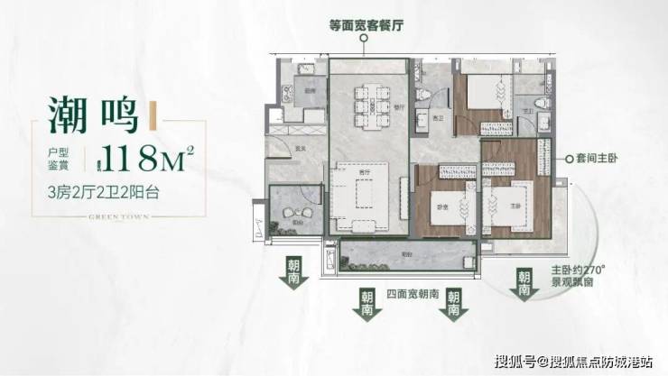 建面约100平方米的两房两厅两卫户型,虽然面积不大,但功能齐全,适合年轻夫妇或小家庭使用。而建面约140平方米的三房两厅两卫户型则提供了更为宽敞的生活空间,尤其是三个阳台的设计,增加了室内外互动的可能性。所有户型都注重空间的有效利用,尽量减少过道等无效空间,最大化地提升了居住的舒适度。