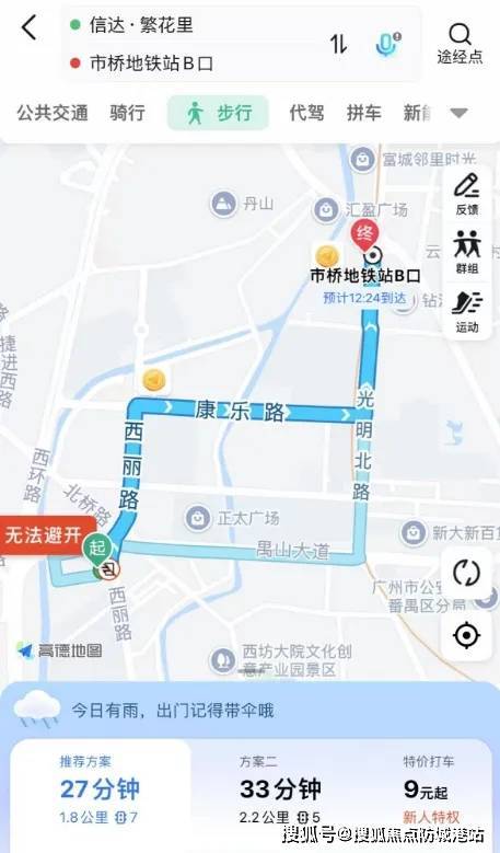地铁交通方面,距离现有的市桥地铁站步行仅需约1.8公里,步行约27分钟,不算很近。但可通过电动车或公交进行接驳,一定程度上弥补了地铁不便的短板。