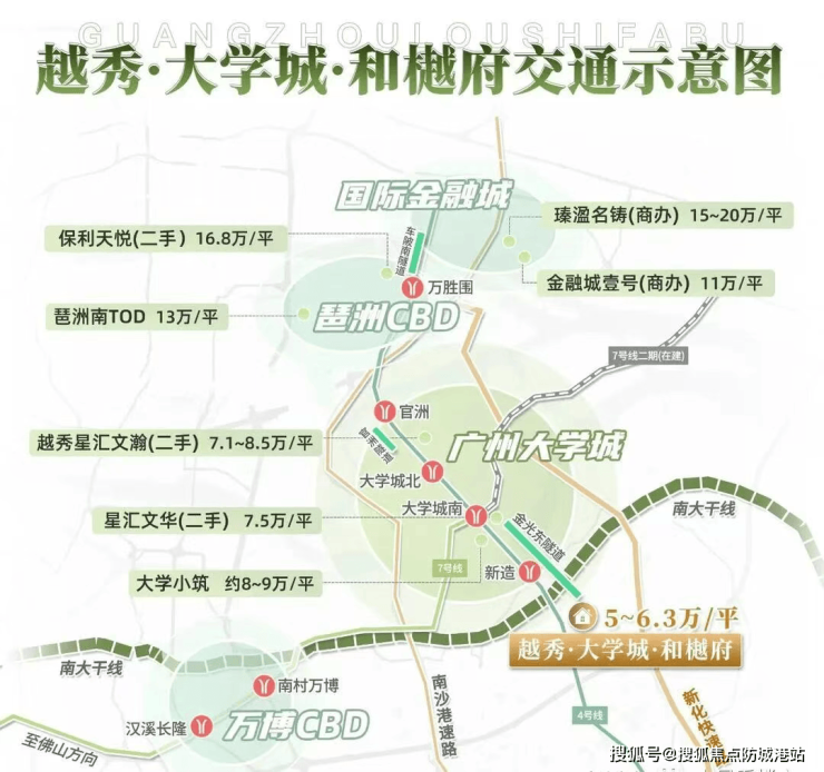 自驾出行同样便捷:南大干线已全线通车,5分钟直达万博中心,30分钟畅达珠江新城;金光东隧道已正式开通,5分钟无缝衔接大学城一期,实现片区资源整合。无论是日常通勤还是周末出游,都能享受高效出行体验。