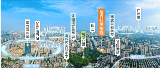 除官宣学校外,项目周边还环绕着多所名校,距离海联路小学、滨江东路小学约1.5公里,步行约20分钟可达;万松园小学、昌岗东路小学(千禧校区)等也在3公里范围内,驾车约10分钟即可抵达。中学方面,广州五中近年来成绩跻身全市TOP10,海珠实验小学、南武实验学校等均为海珠一、二梯队名校,教育氛围浓厚。