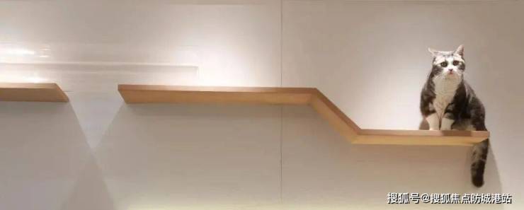 墙上跳板与置物架高低错落,为猫咪提供安全又具有趣味的垂直空间,让这份相互治愈的陪伴,变得更加可爱与温馨。
