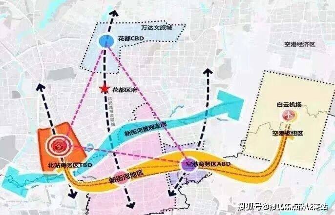 花都中轴CBD、北站新城、空港经济圈将形成黄金三角的聚能效应。