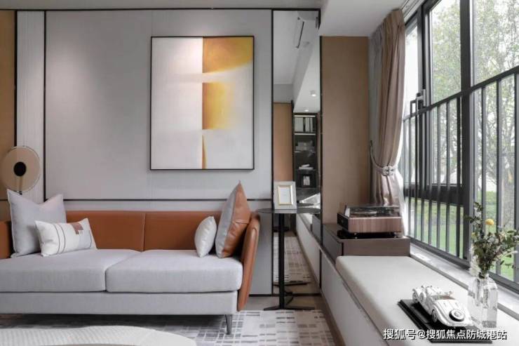 主卧榻榻米上摆放着唱片机,沙发与床相对,空间建立起人与人之间的情感交流。睡前十分钟,放下手机,在沙发上听歌品酒,看窗外夜景,你会发觉世界似乎也很动听。