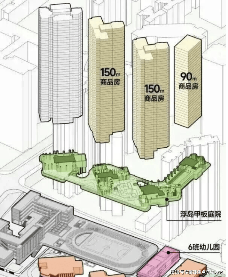 低密社区:浮岛甲板+高层布局,实现私密性与社区交互的平衡