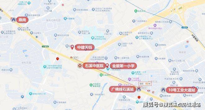 中建天钰地理位置优越,距离地铁石溪站(广佛线&10号线)和燕岗站(广佛线&11号线)步行距离分别为750米和900米,属于双地铁站项目,通勤便捷。自驾出行也十分方便,项目紧邻工业大道,连接城市各主要干道。