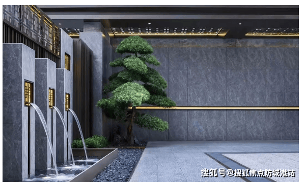 很多楼盘刚交付时光鲜亮丽,过了五年就显旧,外墙斑驳。但这个项目用的是“传家宝”级别的用料。走进园区,9223.8㎡的园林由上市公司普邦团队操刀,“云山珠水”的理念被具象化为“归家五重景”。从乘月归家到叠级水景墙,每一步都像在逛公园。