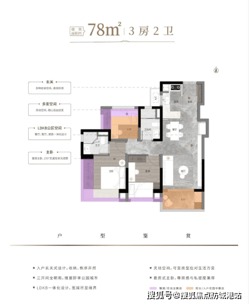 加粗副标题:建面约78㎡三房两厅两卫——刚需首选,使用率超100%