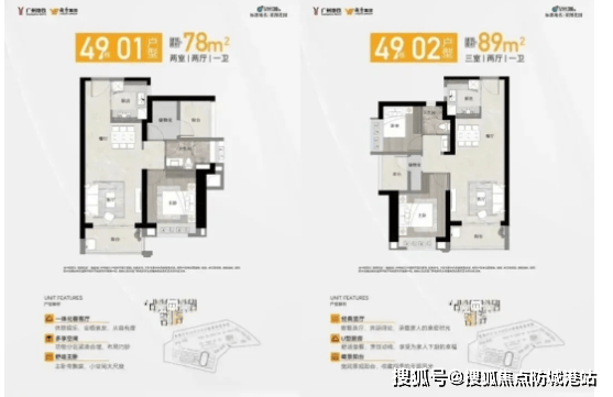 89方三房两卫与90方三房两卫户型,在刚需基础上提升了居住舒适度。两卫设计满足多人口家庭的使用需求,避免早晚高峰使用拥堵;主卧配备独立卫生间,保障主人隐私。户型南北通透,采光通风效果极佳;客厅面宽适中,连接景观阳台,可俯瞰社区园林美景;卧室均带飘窗,拓展使用空间的同时,增加了采光面。