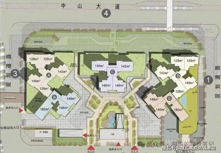 楼栋规划:共计5栋高层住宅建筑,社区规划规整有序