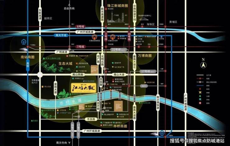 1、在当下的房地产市场中 寻觅一处理想居所 是众多购房者的心愿 国科众安·江屿大观 以其独特魅力 进入人们视野 它坐落于番禺区禺山大道南侧 此区位优势尽显 宛如一颗镶嵌在广州南区的璀璨明珠 成为区域发展的重要支撑点 项目所处之地 北望繁华万博CBD 那是商业与活力的汇聚地 西接广州南站商务圈 交通枢纽带来无限机遇 南靠南沙经济发展区 经济发展的澎湃动力在此涌动 东侧更是直通东莞 深圳等城市 为城市间的交流与发展搭建桥梁 无论是广州从珠江新城向南的延展 还是番禺万博CBD与广州南站的连接 项目皆稳稳处于广州向南发展的黄金脉络之上 为居民带来无限可能