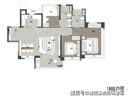 建面约84-88平方米:三房两卫设计,适合年轻家庭或首次置业者。