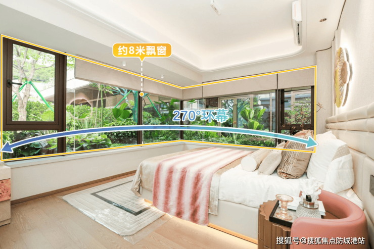 甚至,这个户型的主卧套房还打造了南向约8米L型观景飘窗,270°宽阔视野,美景随时扑面而来。