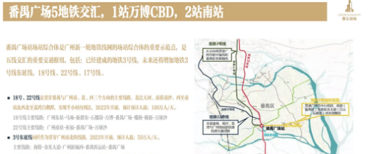 交通方面,项目紧邻地铁3号线、18号线、22号线交汇的番禺广场站,同时临近规划中的地铁17号线,形成多维地铁网络。其中17、18、22号线时速高达160公里,为国内在建地铁中时速最快的线路,实现1站直达万博商圈、2站抵达广州南站、5站通达天河核心区,快速衔接珠江新城、琶洲、白鹅潭等核心商务区,通勤效率拉满。