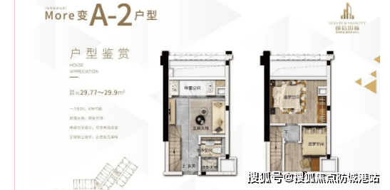 30㎡一房一厅复式户型:该户型为刚需及投资首选,一层规划客厅、厨房、卫生间,二层为卧室区域,空间布局紧凑合理,无浪费面积。4.5米挑高让空间不压抑,客厅连接观景窗户,保证采光与通风。明火厨房可满足日常烹饪需求,二层卧室私密性强,适合单身精英自住,也可作为办公工作室,出租回报率可观。