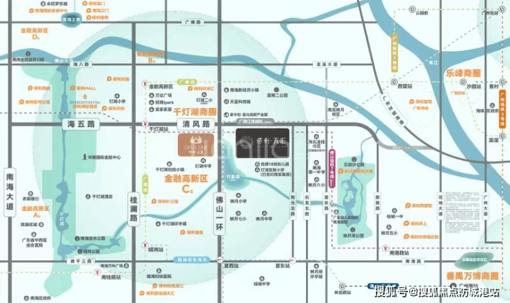保利天汇位于佛山一环东侧、海五路以南,地处金融高新区C区东拓板块,与广州荔湾直线距离仅2公里。这一优越的地理位置使得项目能够共享千灯湖板块的交通、产业、公园等配套资源,极大地提升了居住的便利性和舒适度。