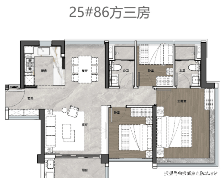 2号楼总高31层,采用2梯3户设计,全部为118㎡四房两卫户型,层高3.05米,分为竖厅与横厅两种户型,其中横厅户型实现南北对流,拥有20米超大看江面,视野无敌,空间布局科学合理,四房设计可满足三代同堂的居住需求,兼顾实用性与舒适性。