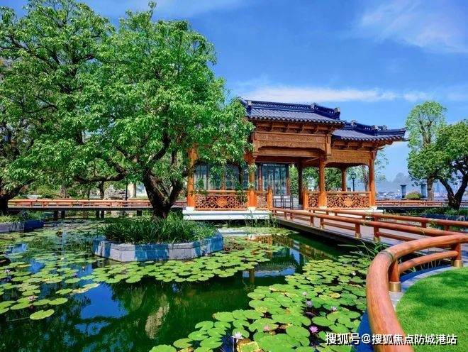 △星河湾·半岛五号园林效果图 (水景中的荷花生长在有恰当水深和塘泥的自然环境中,池中还设置了保证水体澄澈的水体循环系统)