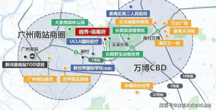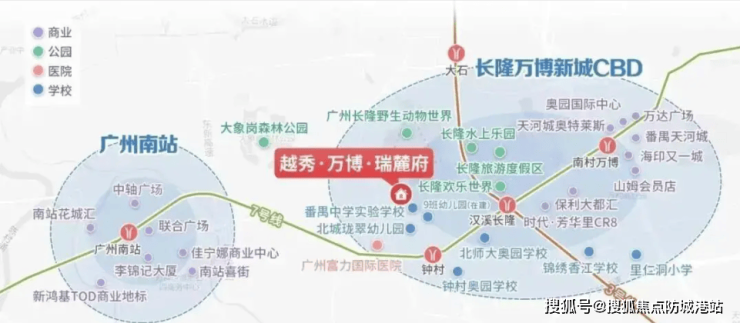 更让人惊喜的是板块的扩容升级,万博CBD的范围从原来的1.5平方公里扩大到7.2平方公里,推动万博、长隆、汉溪连片发展,形成“商-旅-创”三角格局。越秀集团主导500万方里仁洞村更新,华润置地与长隆共建近30万方商业综合体,未来还会修建空中轨道连接各区域,让板块的联动性更强。