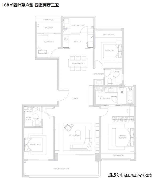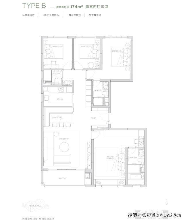 户型设计以舒适与品质为核心。所有楼栋为 16 - 17 层纯板式小高层,专梯专户,保证居住的低密舒适。虽不是新规后的产品,但户型设计注重空间利用与居住体验。如 168㎡四叶草户型,四室两厅三卫,搭配【M + 科技系统】,从空气、饮水、环境等核心要素出发,采用优质材料与工艺,满足现代智慧社区与智能生活需求,为业主打造绿色健康的居住空间。