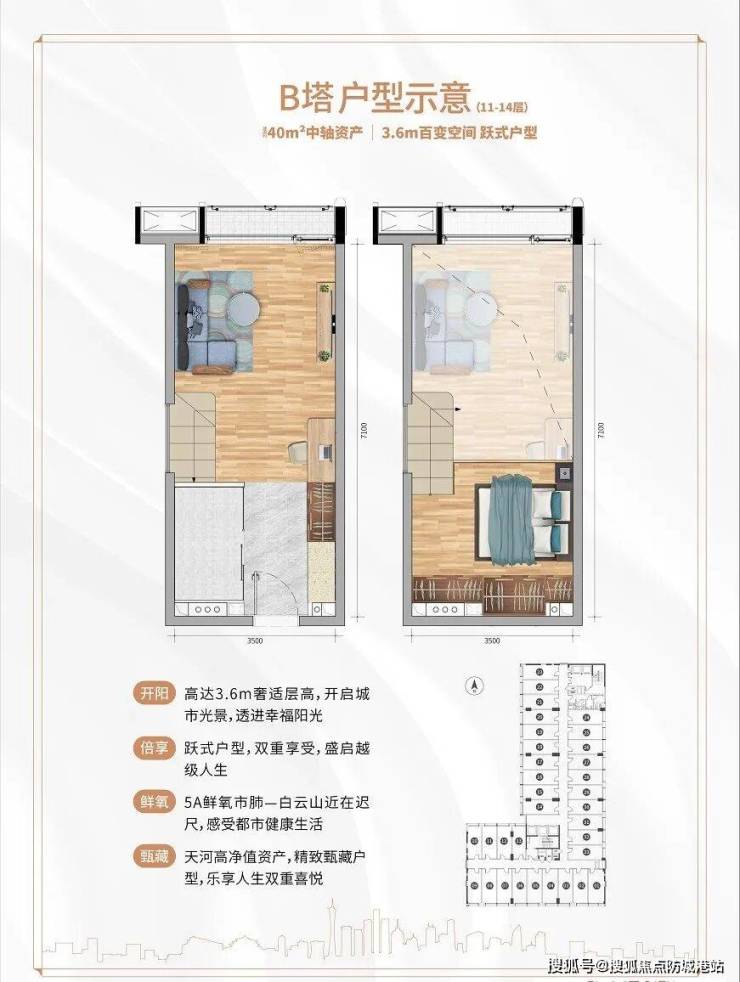 广垦·天河1号主打约31至57平方米中小户型产品,层高分别为3.4米、3.6米及4.5米LOFT复式设计,空间灵活多变,满足自住与办公的多重需求。中轴核心地段的产品稀缺性,使得每一寸空间都经过精心打磨,兼顾实用与美感。部分户型采用中空挑高设计,采光充足、通风良好,营造出舒适的生活氛围。这样的空间设计既体现人性化考量,也符合都市菁英的生活方式。
