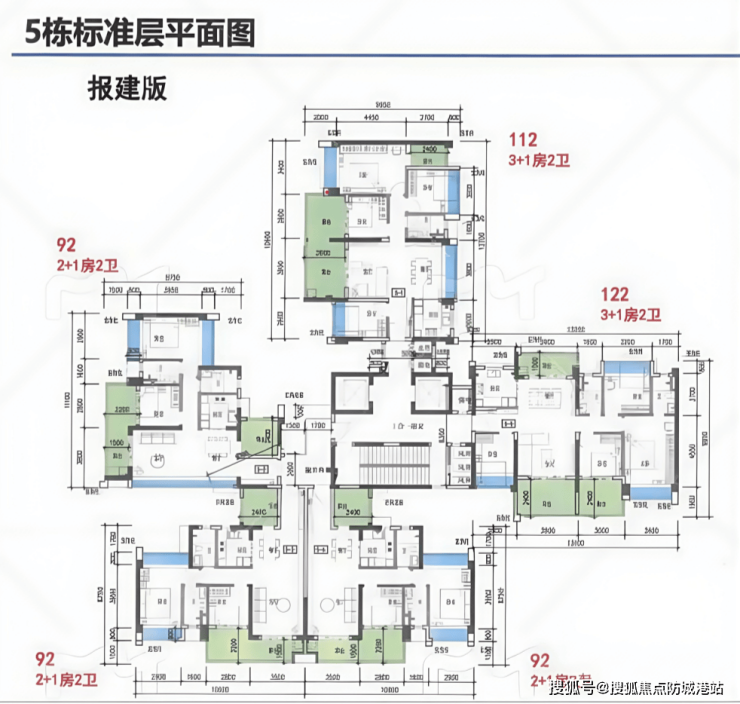 低密度住宅:2梯3户和2梯5户设计,29-32层普通高层建筑,相对较低的建筑密度提升了居住品质。