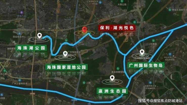 保利湖光悦色坐落于海珠区华洲路旁,紧邻广州CBD“珠金琶”(珠江新城、琶洲、金融城)黄金三角区,是主城区罕见的低密度生态住区。项目北望琶洲数字经济岛,南邻1100公顷海珠湿地公园,既承接琶洲产业升级带来的区域价值红利,又依托城市稀缺生态资源,形成“左手繁华,右手自然”的独特占位。从城市规划看,琶洲作为广州“人工智能与数字经济试验区”核心,已吸引腾讯、阿里、唯品会等企业总部入驻,未来将带动区域交通、商业、人口全面升级。而项目所在的海珠生态城板块,是广州“中轴南延”战略的重要节点,通过华洲路、新滘路等主干道,可快速串联珠江新城与南沙副中心,区位价值兼具现实便利性与未来想象空间。