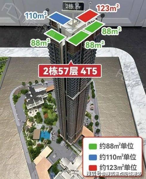 项目占地面积约 14810m²,建筑面积约 104693m² ,规划 4 栋住宅,总层高 57 层,容积率 7.5 ,总户数约 1040 户,4 梯 5 户的梯户比设计。虽说容积率较高,但通过合理规划,打造了八大主题全龄段泛会所,融入广府元素,提升居住体验。