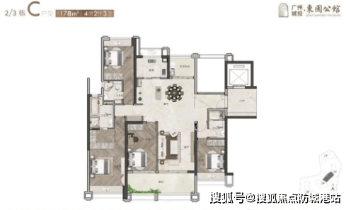 东园公馆提供多种户型选择,面积从91㎡至178㎡不等,包括三房至四房的设计。所有住宅均为专梯专户设计,层高达3.15米,相较于市场上普遍的2.8-3.0米层高,提供了更加宽敞舒适的居住体验。其中,部分户型还特别注重动静分区和空间利用率,旨在满足高端市场的住房需求。