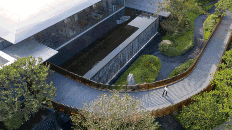 社区内部配套是衡量住宅品质的重要标准。花语天宸在社区景观与公共空间规划方面投入较大,整体园林面积约3.1万平方米,以“山林秘境”为主题打造生态园林环境。园林设计通过景观轴线串联多个功能空间,使社区形成层次丰富的绿色景观。