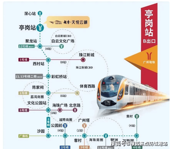 越秀·天悦云湖距地铁8号线亭岗站仅约100米,真正实现“地铁上盖”出行体验。8号线贯穿荔湾、越秀、海珠、白云四大核心区,20分钟内可直达珠江新城、北京路、琶洲等城市重要节点。自驾方面,项目紧邻华南快速、机场高速、广清高速等主干道,15分钟通达白云新城、广州北站,30分钟覆盖天河、佛山等地。此外,周边公交线路密集,接驳灵活,构建起高效立体的交通网络,极大提升了日常通勤与跨区出行的便利性。