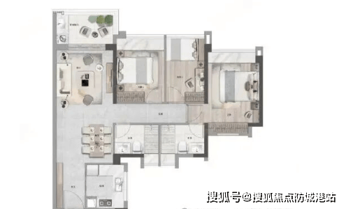 87㎡三房两卫兼顾功能与舒适,