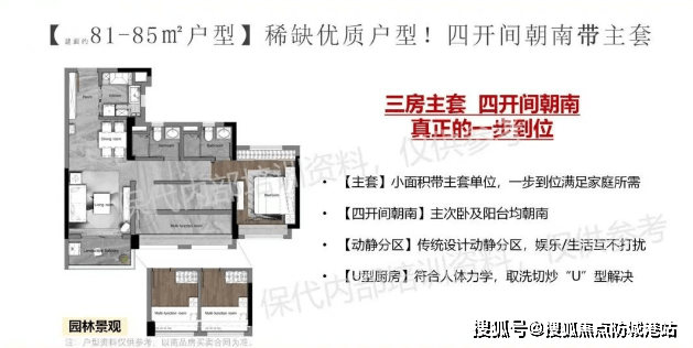 住宅楼栋:涵盖多种面积段,得房率高达95%,比同等面积多两个空间。